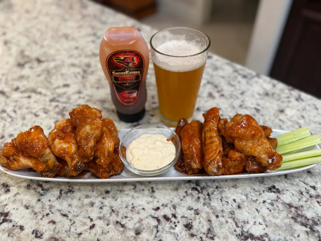 Helen SmokeEaters hooked me up with some Atomic sauce when they heard I’ve been missing their wings. I’ve been craving it ever since we moved across country 4 years ago. Sauced my wings tonight and they were so good. Thank you SmokeEaters for making your sauce available so those who aren’t local anymore can still satisfy their cravings.